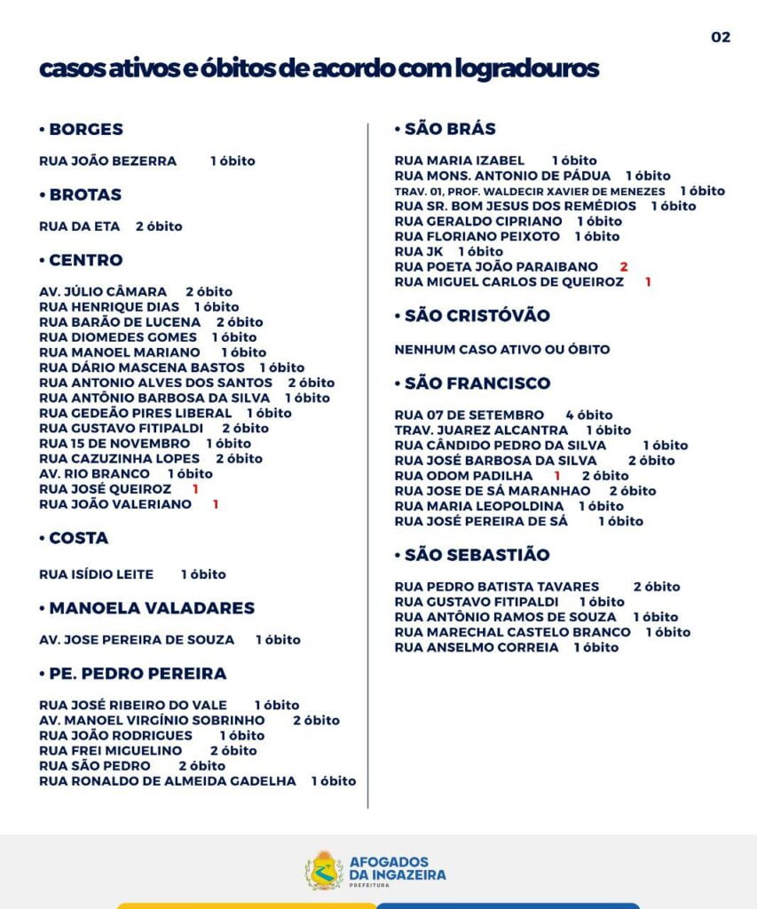 A Prefeitura de Afogados da Ingazeira informa que nesta sexta (10) foram notificados 02 casos novos para a COVID-19 em nosso município.