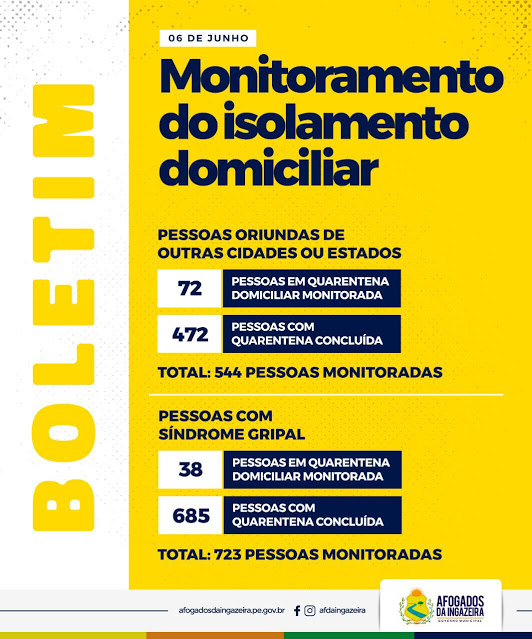 A Prefeitura de Afogados informa que dos casos que estavam em investigação, a paciente do sexo feminino, 63 anos, foi a óbito no dia de hoje. O resultado do exame para COVID -19 deu negativo. A paciente apresentava outras doenças crônicas, entra elas, DPOC (Doença Pulmonar Obstrutiva Crônica).