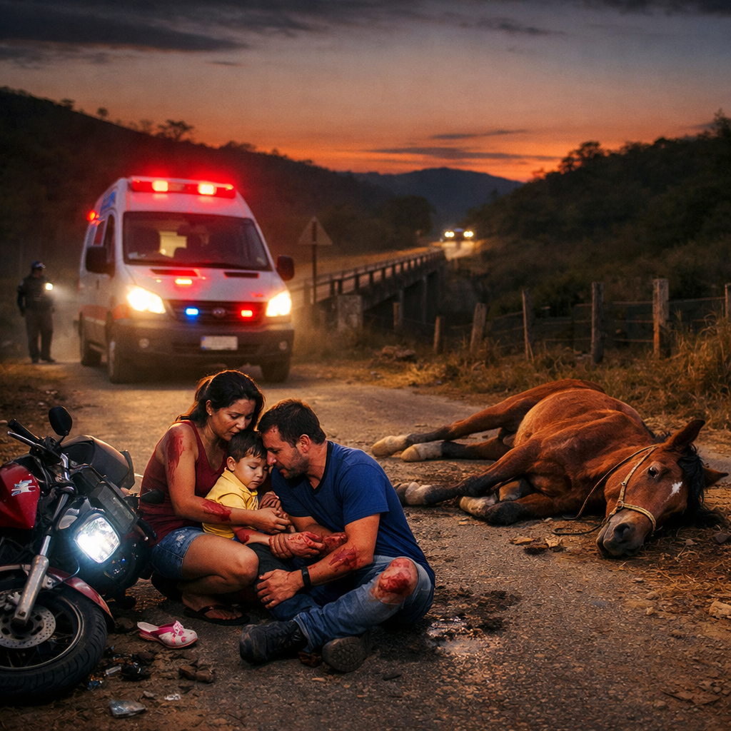 Um acidente foi registrado por volta das 18h30 do último sábado (04), após uma moto colidir com um cavalo que havia se soltado da corda.