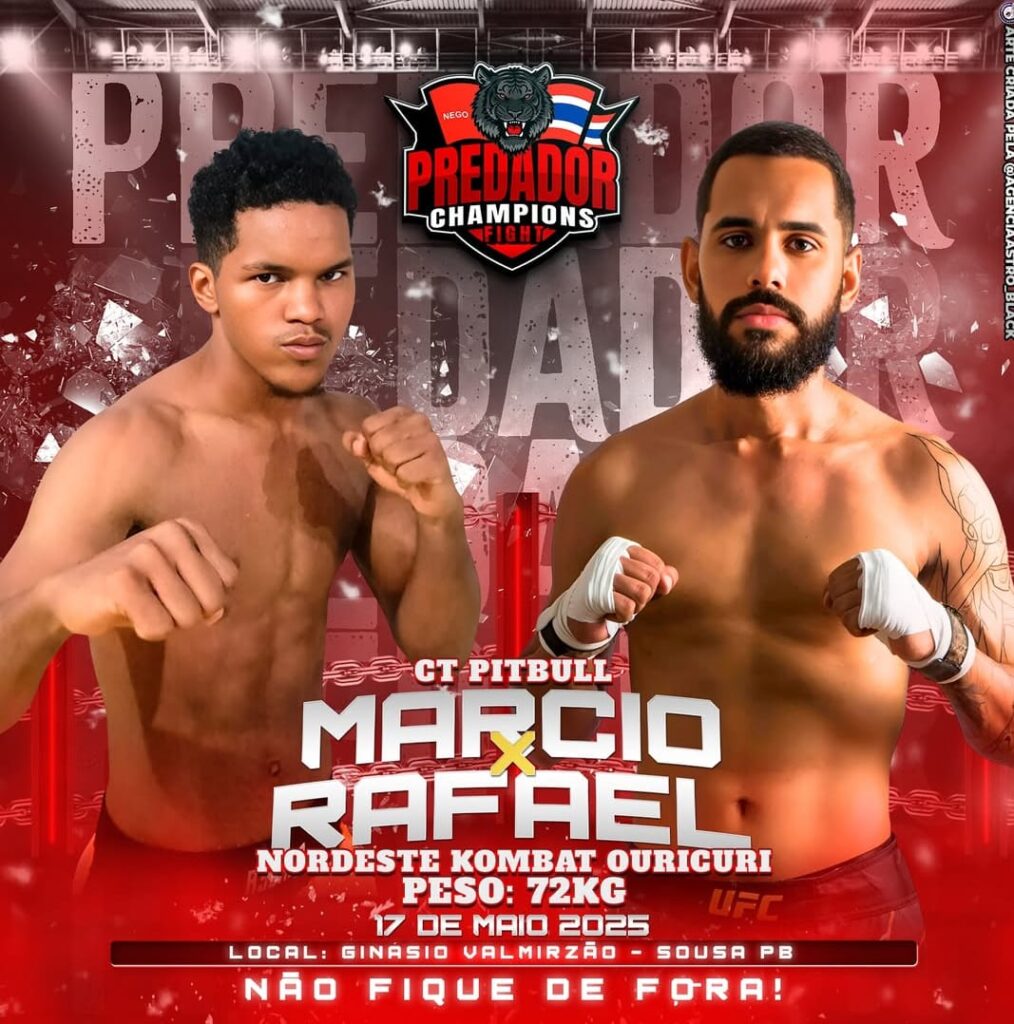 No próximo sábado, 17 de maio, os atletas Márcioh “Spider” e João Pedro “Gigante” participarão de um evento de Muay Thai na cidade de Sousa, na Paraíba. Eles representarão a equipe Monstro Top Team, comandada pelo professor @nilsonmonstro86, levando o nome de Afogados da Ingazeira para o octógono nesse grande duelo de gigantes.