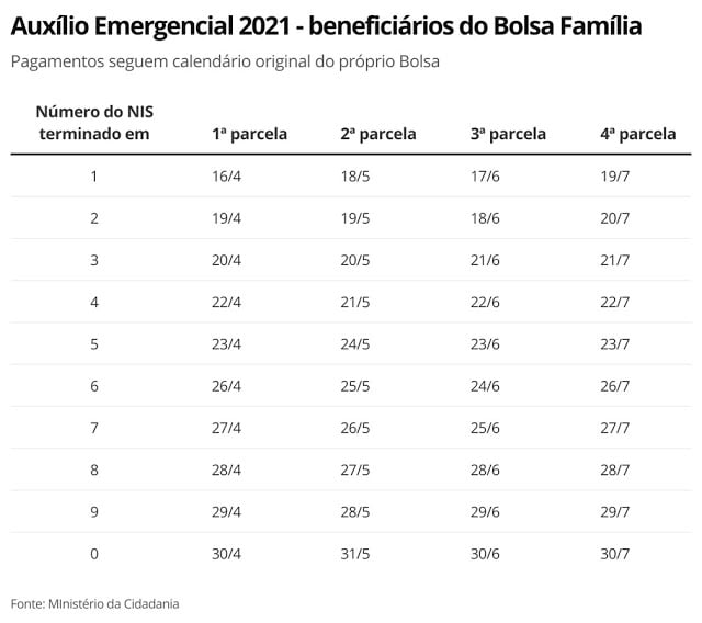 O pagamento da primeira parcela do auxílio para este público terminou em 29 de abril. Para quem faz parte do Bolsa Família, os pagamentos foram até 30 de abril.