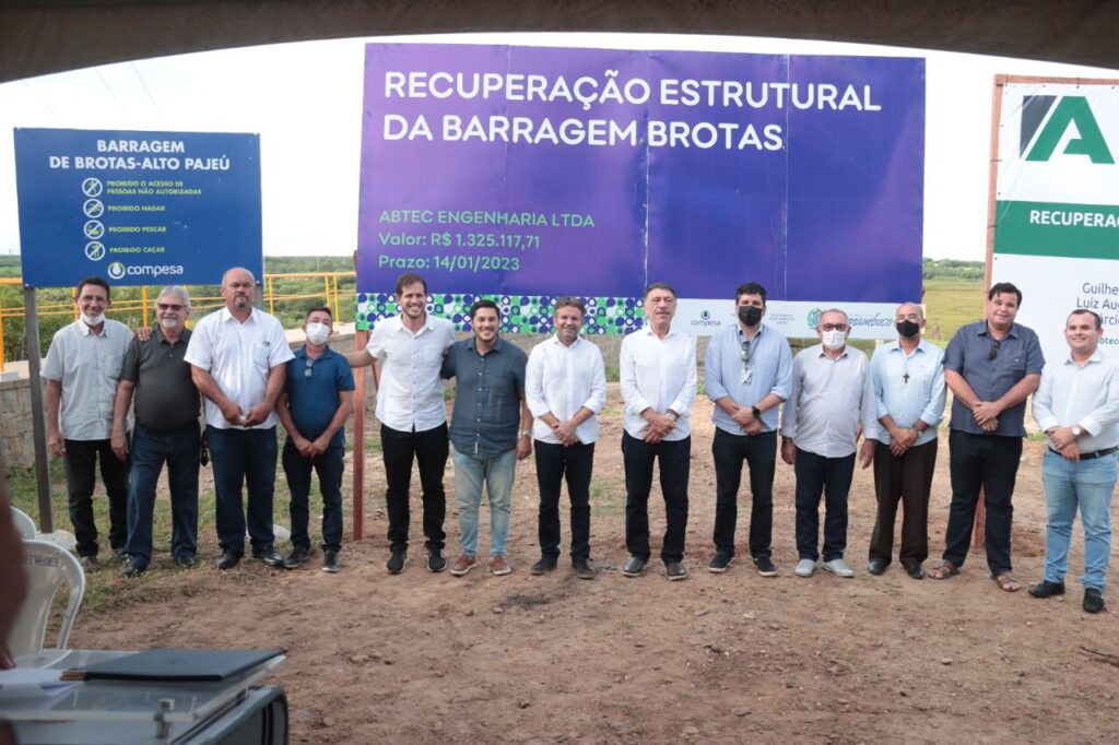 A assinatura da ordem de serviço para a obra – orçada em 1..325.117,71 – aconteceu nesta terça-feira, na área de acesso ao paredão da barragem. O Governador Paulo Câmara esteve representado na solenidade por Mário Heitor, Diretor do Interior da Compesa, que fez questão de especificar algumas das ações que serão realizadas, como a recuperação do maciço (paredão) do vertedouro, recuperação das juntas de dilatação – com a injeção de resina de poliuretano, a recuperação do revestimento interno da galeria de inspeção e drenagem, bem como a recuperação de sua armação de concreto. A obra deverá estar concluída em Janeiro de 2023.