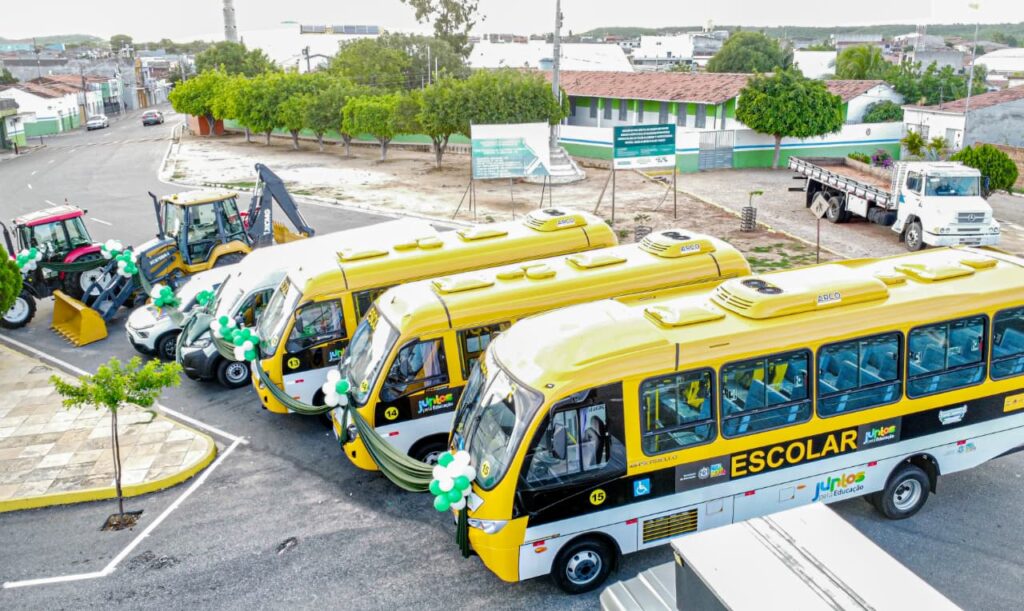 Durante a tarde, a gestão municipal celebrou o aniversário da cidade com a entrega de novos veículos e máquinas que irão fortalecer os serviços públicos. Foram entregues 03 ônibus escolares, 01 van escolar, 01 veículo destinado à Secretaria da Mulher, além de 01 trator agrícola e uma retroescavadeira, equipamentos que irão beneficiar diretamente as áreas de educação, assistência e agricultura, ampliando a capacidade de atendimento à população tanto na zona urbana quanto na zona rural.