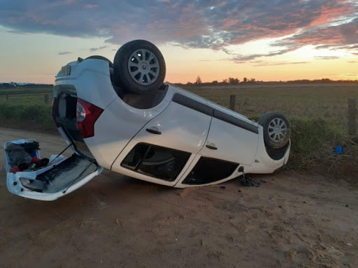 Chegando ao local encontraram um homem de 54 anos, que sofreu um acidente tipo capotamento e apresentava lesão no nariz com hemorragia devido o impacto com o volante.