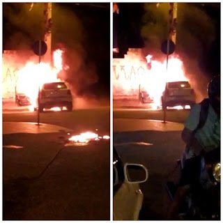 Não demorou muito para as chamas tomarem conta do automóvel. O Corpo de Bombeiros ainda foi acionado, esteve no local, apagou as chamas, porém o carro já estava praticamente destruído.