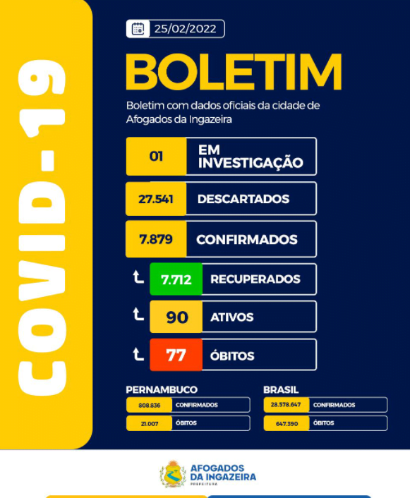 A Prefeitura de Afogados da Ingazeira informa que nesta sexta (25) foram notificados 13 casos novos para a COVID-19 em nosso município.