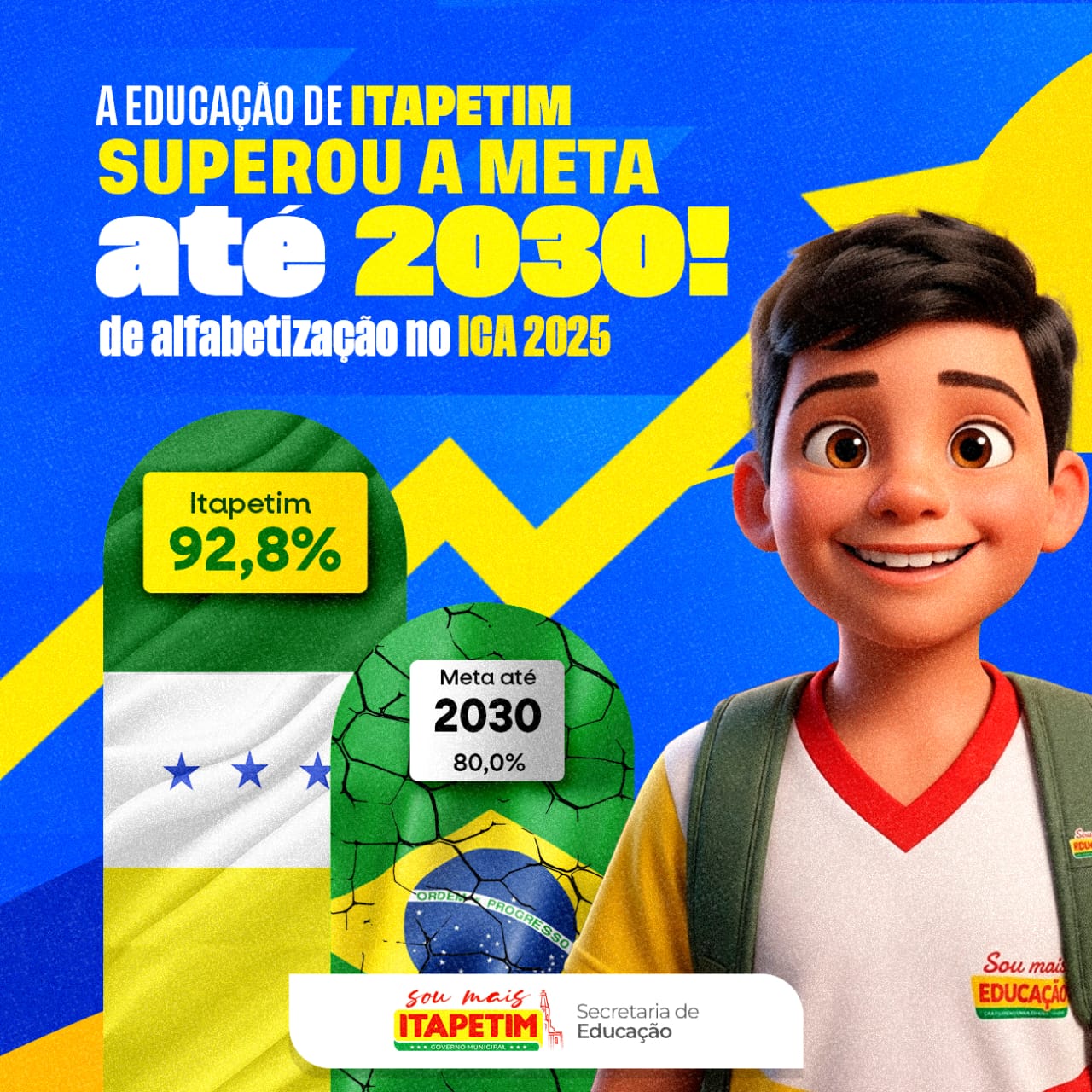 O compromisso nacional até 2030 é garantir que mais de 80% das crianças estejam alfabetizadas. Com o resultado de 92,8%, Itapetim já supera a meta prevista, que é de 80%.