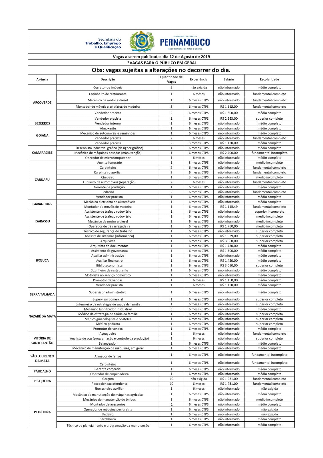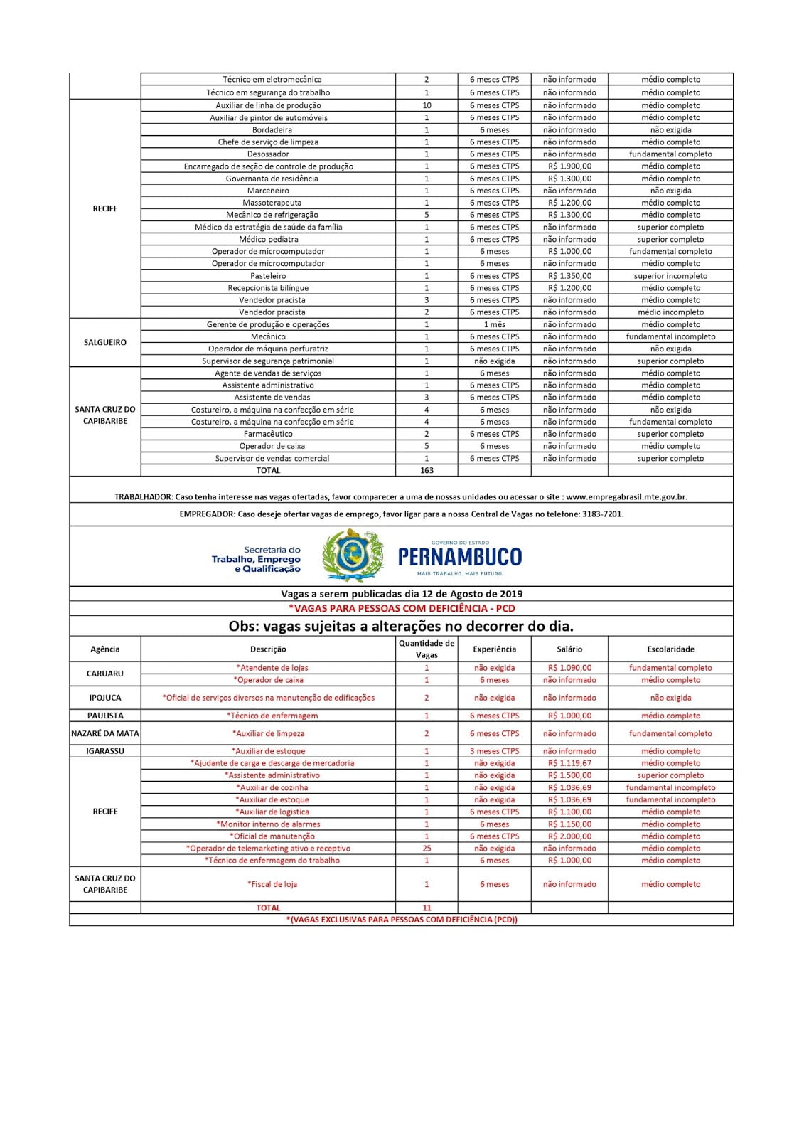 Confira vagas de emprego disponíveis nesta segunda (12)