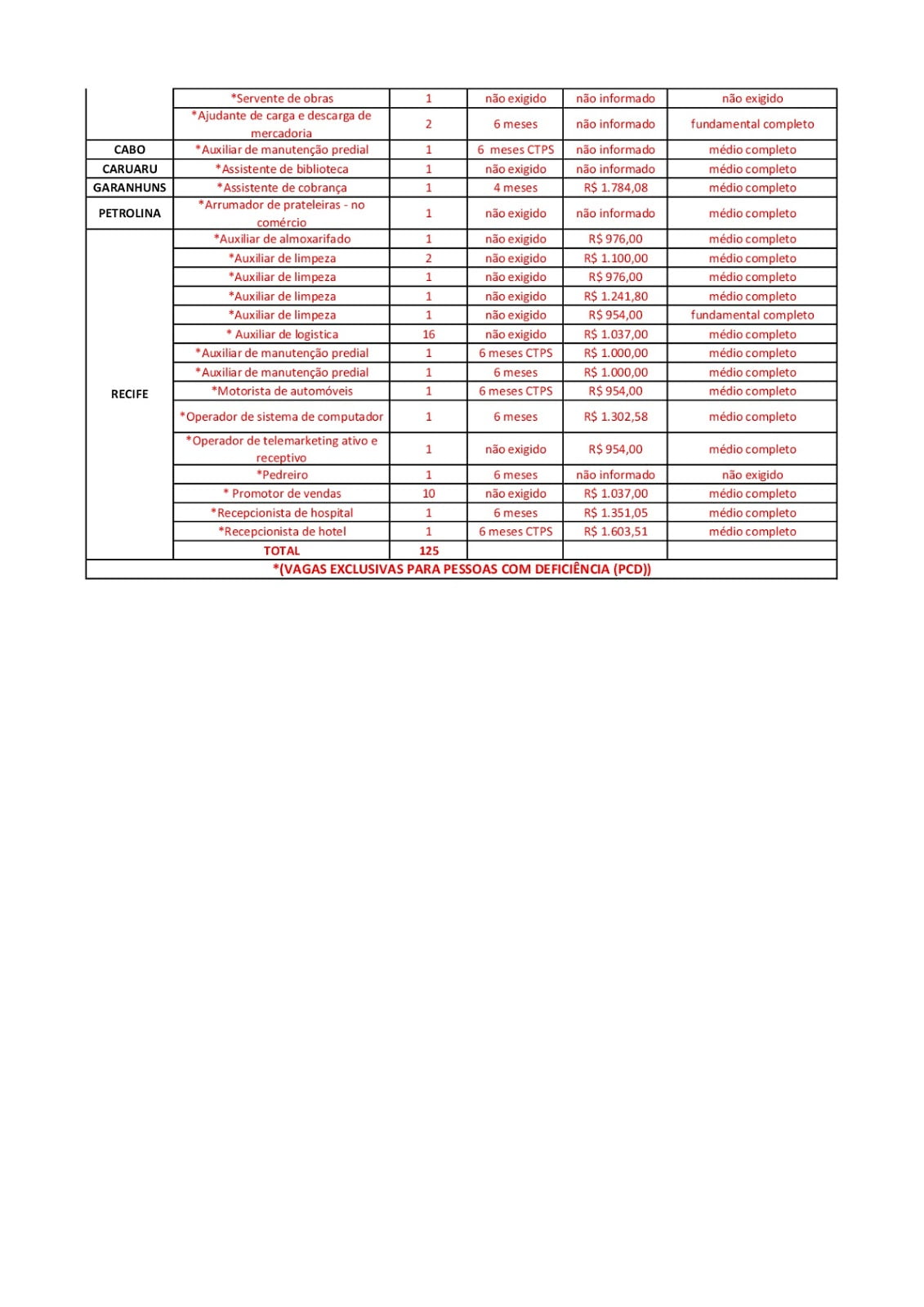 Confira as vagas disponíveis: