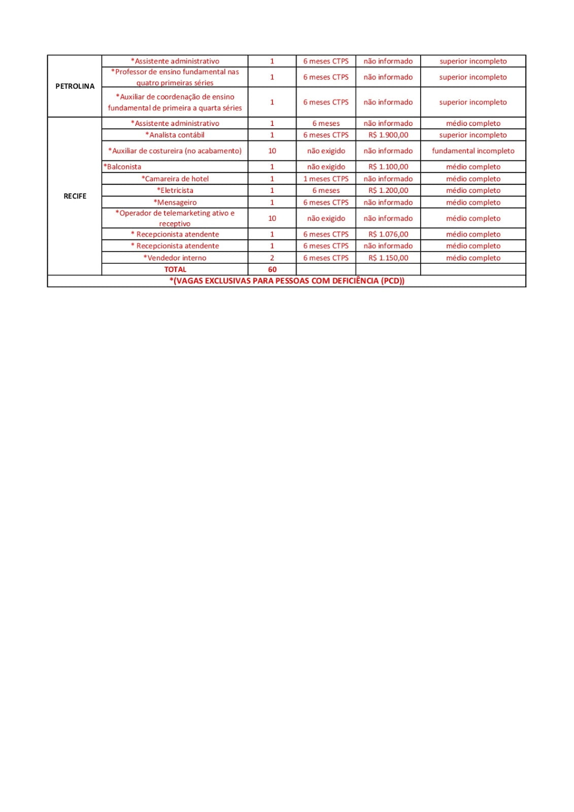 Confira as vagas disponíveis: