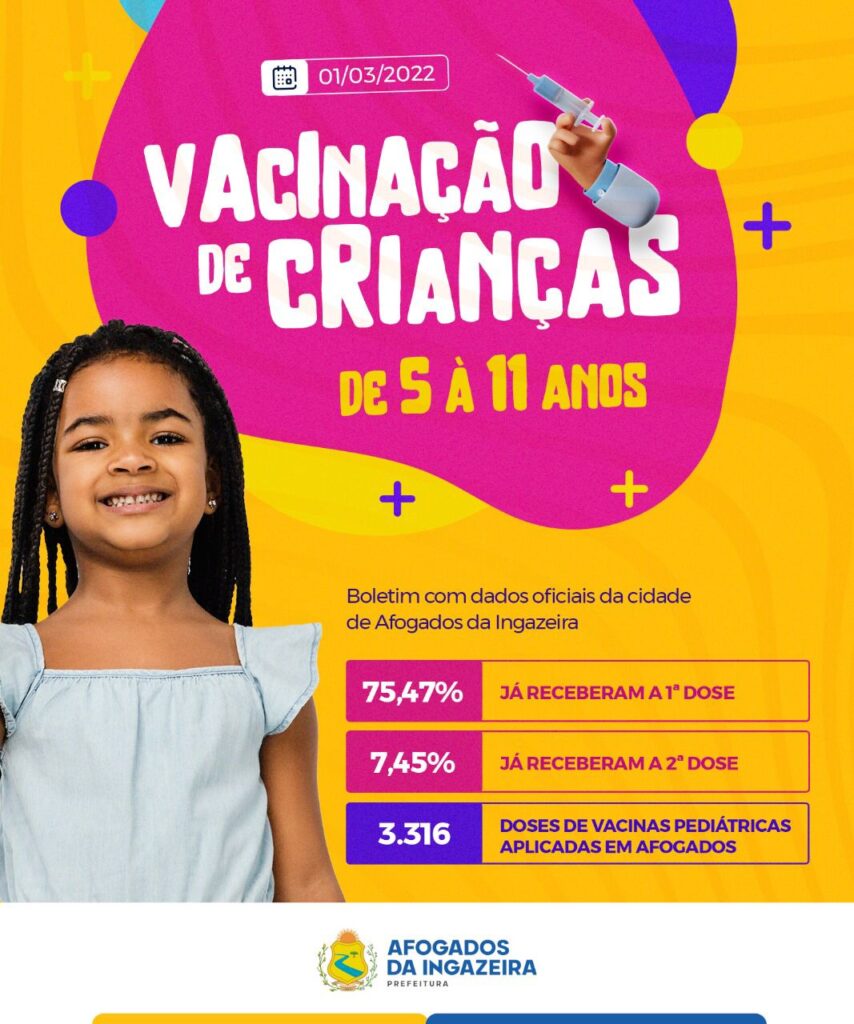 75,4% das crianças de 5 à 11 anos já tomaram a primeira dose da vacina contra a COVID em Afogados.