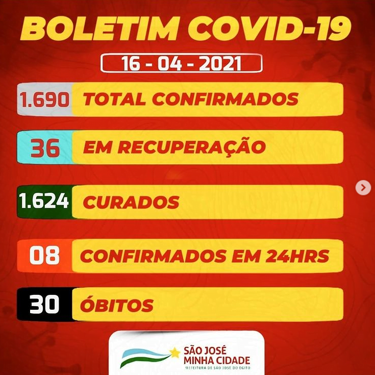O nordeste soma 3.165.457 infectados, com 77.044 óbitos, percentual de 2,43% de casos fatais. Pernambuco apresenta 378.852 contaminados, atingindo a marca de 13.102 mortes, percentual 3,45%. São José do Egito apresenta 1.690 casos confirmados, tivemos 30 óbitos, uma taxa de letalidade de apenas 1,77%.