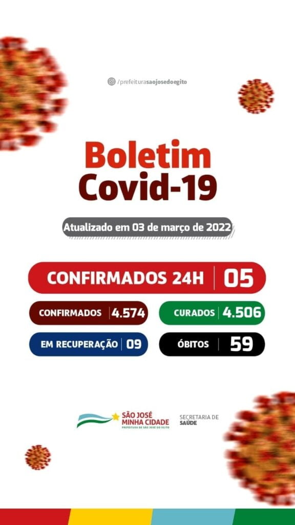 Nas últimas 24hs, São José do Egito registrou 8 pacientes curados da covid-19. Nessa quinta-feira, recebemos a confirmação de 5 infectados pela covid-19 em nosso município. Atualmente, nossos profissionais de saúde estão acompanhando 9 casos ativos.