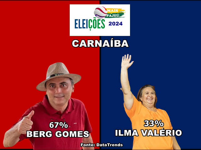 Pesquisa do Instituto DataTrends divulgada na madrugada deste sábado (07/09), mostra o candidato Berg Gomes, liderando com vantagem significativa a disputa pela eleição da Prefeitura de Carnaíba.