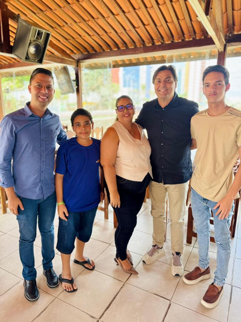 Em outro momento, recebeu com alegria a conterrânea florense Ildilene Medeiros, acompanhada do filho Samuel e do afilhado Ênio Medeiros, ao lado do amigo Gilberto Ribeiro, consolidando laços que unem sua terra natal à capital do Sertão.