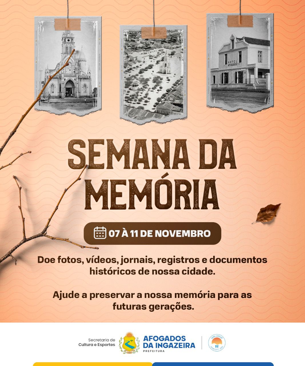 A Prefeitura de Afogados da Ingazeira promove até a próxima sexta (11), a segunda edição da Semana da Memória. A atividade tem o objetivo de divulgar e valorizar a preservação do patrimônio histórico e cultural – material e imaterial – do município.