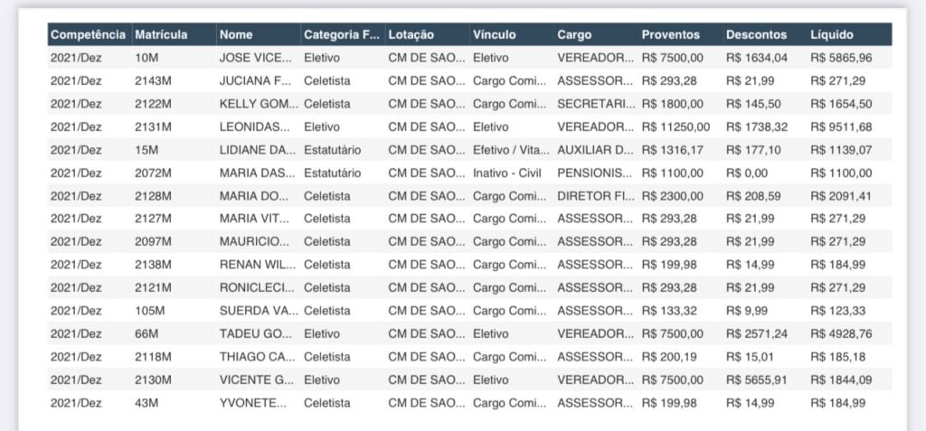 Tivemos acesso as folhas de novembro e dezembro da cãmara e se comprova que não houve pagamento de vários assessores no mês de dezembro.