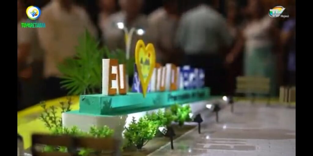 Detalhe para o topo do bolo com a maquete da praça do letreiro, feito pelo talentoso artista afogadense, Luciano Pires. O bolo foi feito por Jeisiele.
