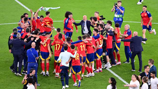 A Espanha venceu a Inglaterra por 2 a 1 no Estádio Olímpico de Berlim neste domingo e conquistou o título da Eurocopa 2024! Nico Williams abriu o placar no início da segunda etapa. Cole Palmer empatou o jogo, mas Oyarzabal, que saiu do banco, fez o gol do título dos espanhóis no torneio.