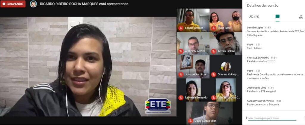 Em comemoração ao Dia Mundial do Meio Ambiente, a Escola Técnica Estadual Professora Célia Siqueira com o Curso Técnico em Meio Ambiente, promoveu um evento com a temática “Atitude Consciente”, entre os dias 31 de maio e 02 de junho. Em parceria com SEBRAE e Espaço Ciência, foram realizadas oficinas on-line com uma visão empreendedora e sustentável. No dia 04 de junho, no período da manhã, iniciamos uma roda de conversa com os Secretários de Meio Ambiente, Agricultura e Convidados, focando a temática “Sustentabilidade com o Gerenciamento de Resíduos Sólidos nos Municípios” . Todo evento aconteceu de forma remota pela plataforma do Google Meet. O encerramento foi abrilhantado com depoimentos dos Técnico Ambientais, e com musical e poesias, participação especial dos estudantes protagonistas da instituição.
