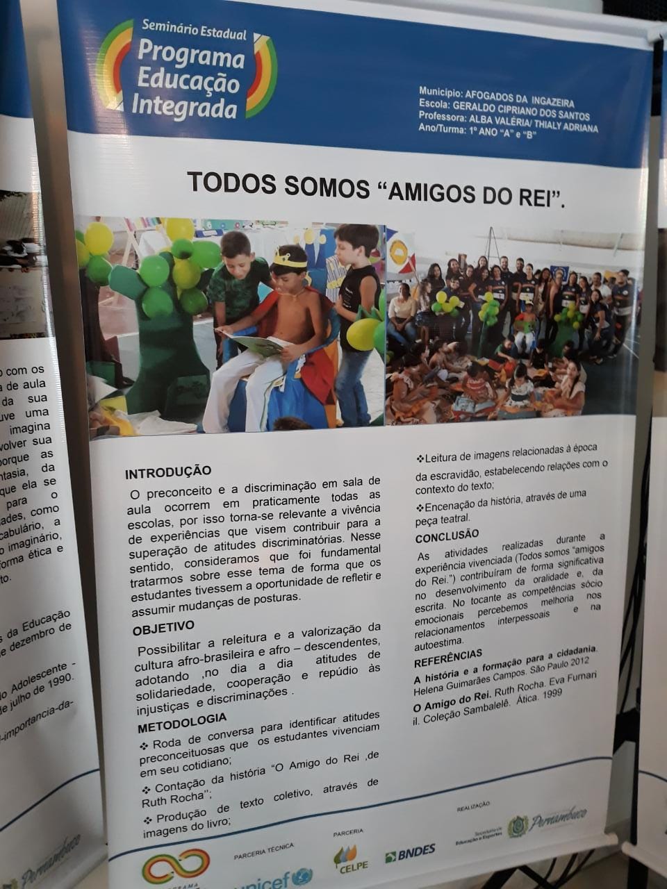 A Escola Geraldo Cipriano de Afogados da Ingazeira apresentou a peça de teatro “Amigos do Rei”. A rede Globo entrevistou as crianças do 2º ano da escola em atividade no evento. A Geraldo Cipriano teve a melhor experiência dos Anos Iniciais do programa de Educação Integrada.