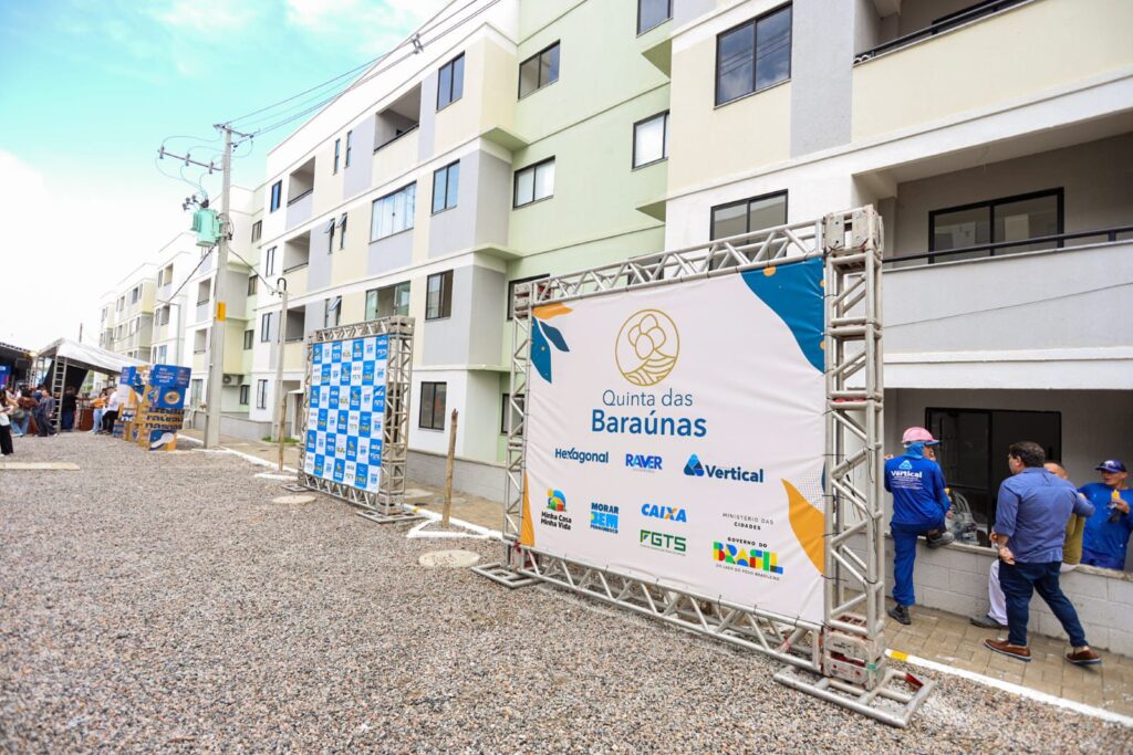 Também nesta quinta (23), a governadora Raquel Lyra entregou as chaves a 123 famílias que passam a morar no residencial Quinta das Baraúnas, em Caruaru. O empreendimento da construtora Hexagonal contou com incentivo do programa Morar Bem PE – Entrada Garantida, que disponibiliza até R$ 20 mil para quem ganha até dois salários mínimos.