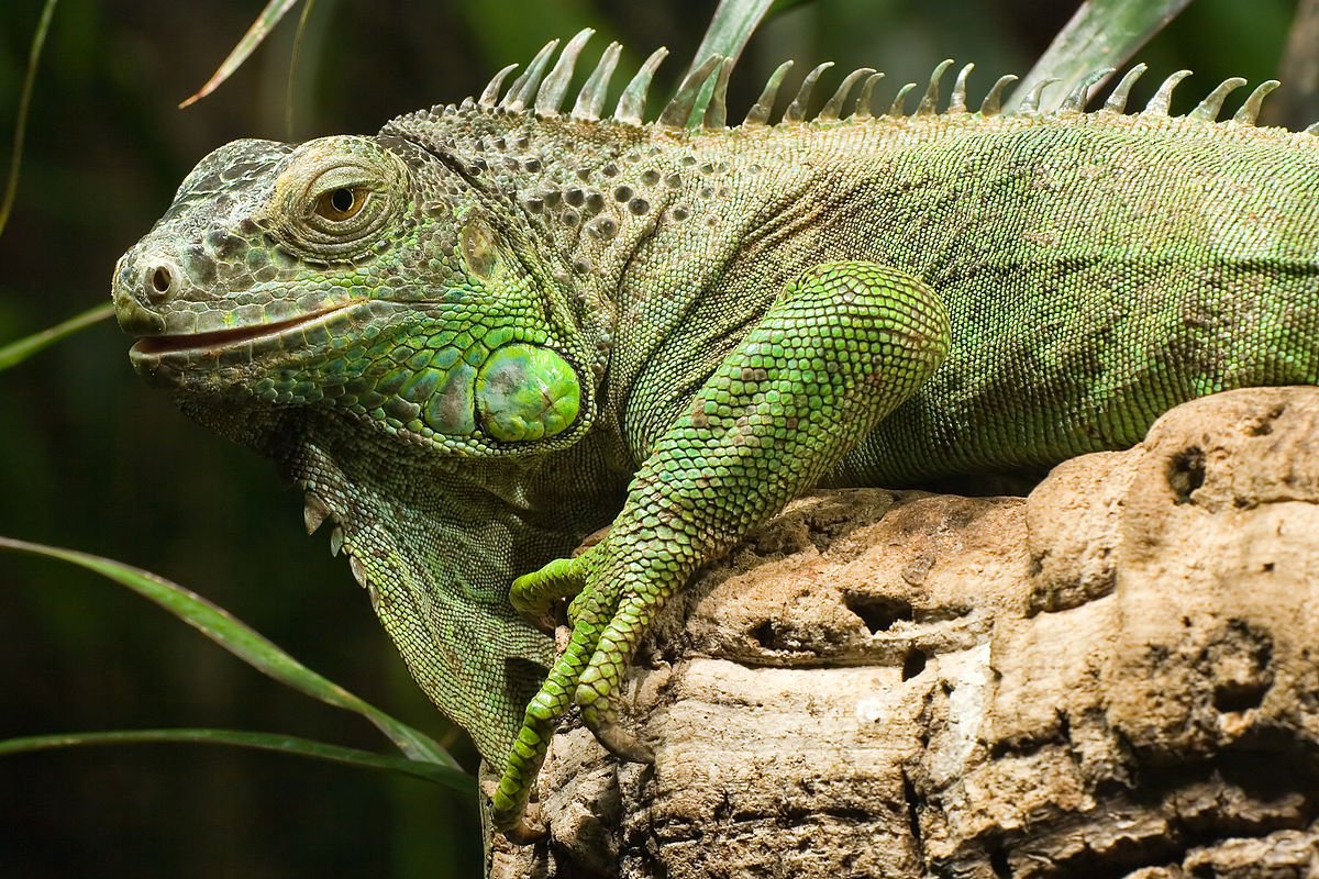 As iguanas têm hábitos arborícolas, isto é, vivem em árvores, podendo atingir até 180 cm de comprimento. Quando jovens, os iguanas possuem uma coloração verde intensa, já quando maiores, apresentam, ao longo do corpo, listras escuras. A cauda de uma iguana possui dois terços do comprimento total do corpo.