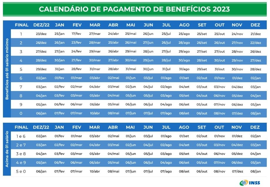 As aposentadorias e pensões do INSS (Instituto Nacional do Seguro Social) começam a ser pagas no dia 25 de janeiro com os valores reajustados de 2023. São 37 milhões de segurados que vão receber até o dia 7 de fevereiro. Segundo o INSS, os depósitos seguirão a mesma sequência de anos anteriores (veja o cronograma abaixo).