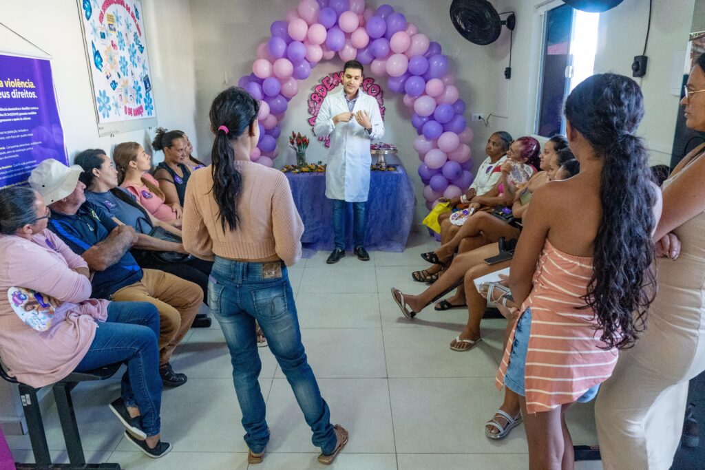 No Centro de Especialidades, as mulheres participaram de uma palestra sobre Autoestima Feminina, ministrada pela psicóloga Keya Cândido. Em seguida, o médico Dr. Renan Siqueira falou sobre Autocuidados com a Saúde Feminina.