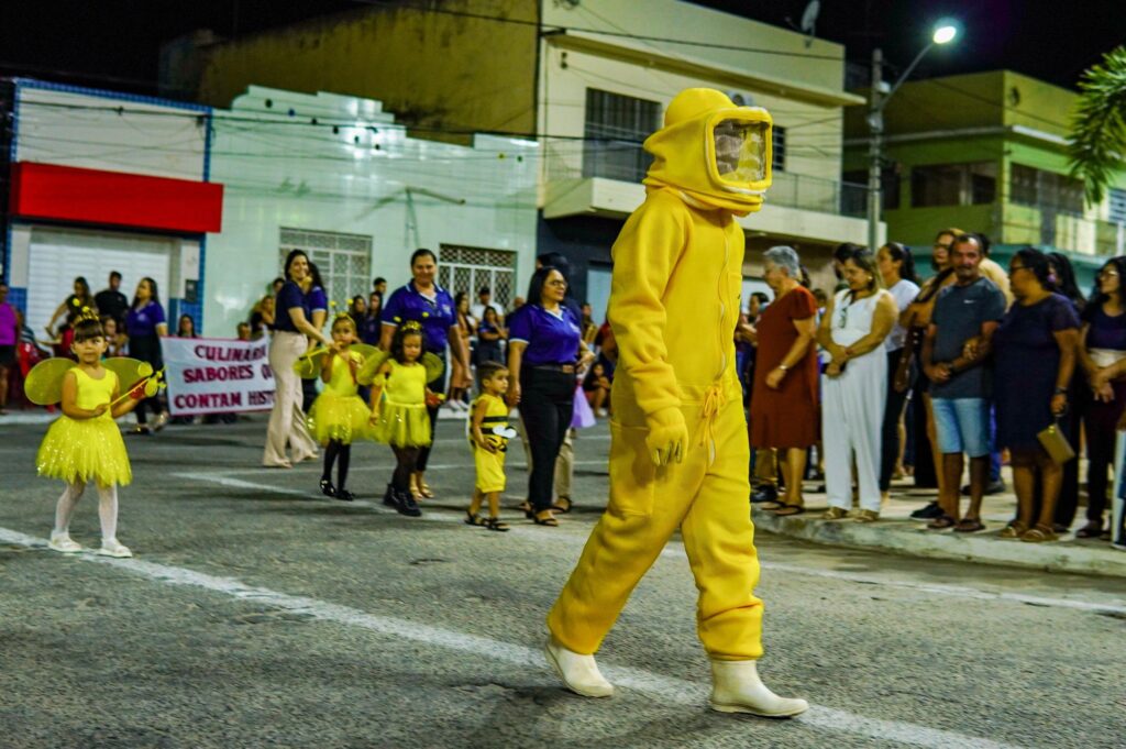 Estiveram prestigiando o desfile a prefeita Aline Karina, seu esposo Robson, o vice-prefeito Chico, o ex-prefeito Adelmo, o presidente da Câmara Júnio Moreira, além dos vereadores Romão, Cleubia e Alexandre, secretários, diretores municipais e a população em geral, que acompanhou as apresentações na Praça Poeta Rogaciano Leite.