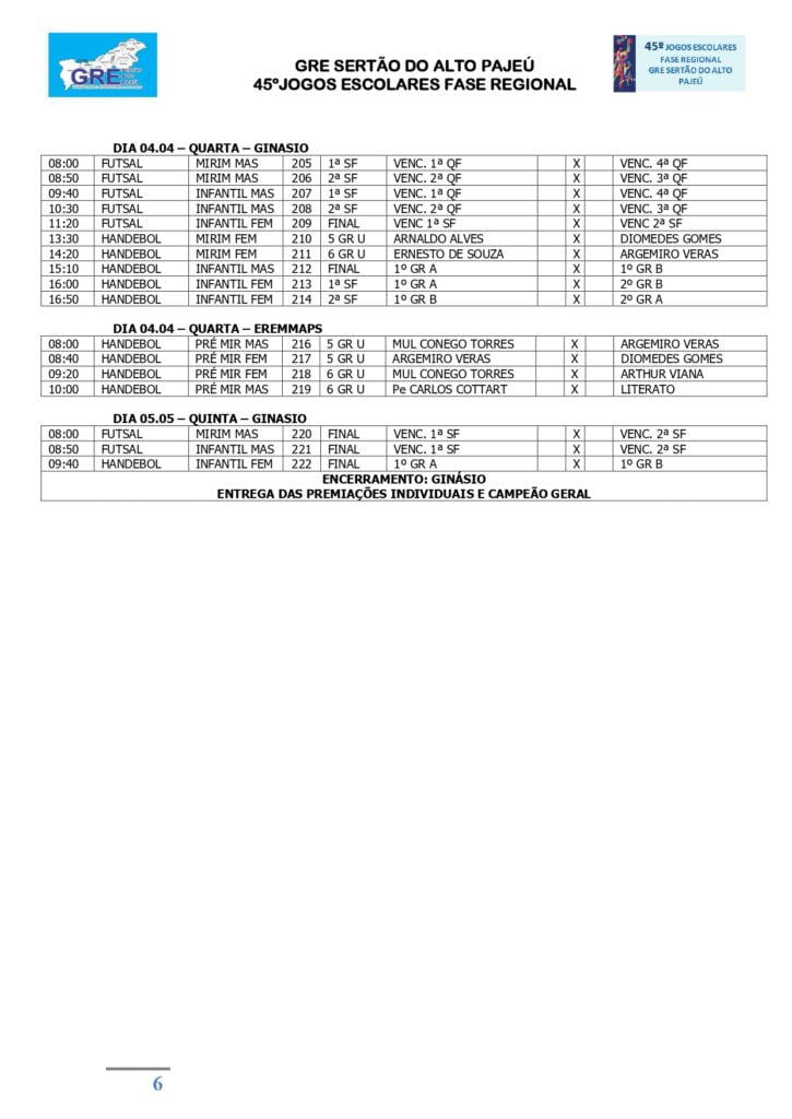 Abertura: 26/04 às 17h Modalidades individuais: dias 27 e 28/04