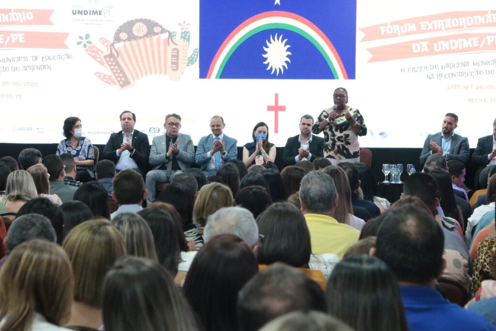 A prefeita de Lagoa do Carro e secretária da Associação Municipalista de Pernambuco (Amupe) Judite Botafogo, participou nesta quinta-feira (19/05) da cerimônia de abertura do Fórum Extraordinário da União dos Dirigentes Municipais de Educação de Pernambuco (Undime/PE). O evento tem como tema “O fazer do Dirigente Municipal de Educação na reconstrução do aprender”.