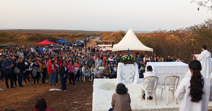 A programação que começa ainda na madrugada, teve procissão saindo da Igreja Matriz de São Judas Tadeu, no Centro da cidade, e seguindo por cerca de 4 KM até o monte, onde aconteceu a santa missa.