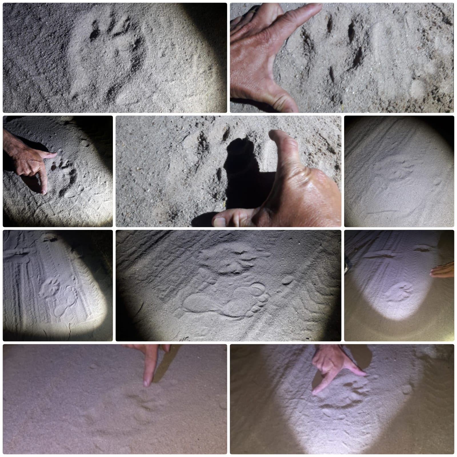 Com a ajuda de vizinhos e lanternas ele registrou os rastros que diz ser da onça que, segundo moradores, já foi vista diversas vezes na localidade e regiões próximas.