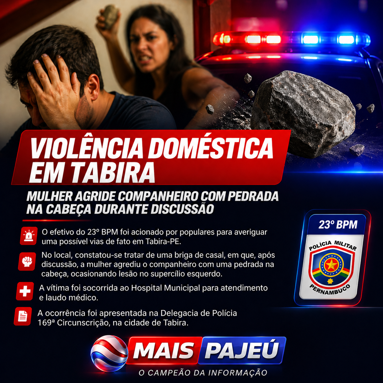 Mulher agride companheiro com pedrada na cabeça após discussão em Tabira