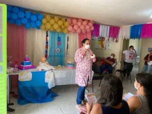 Em todas elas, palestras com as gestantes sobre a importância do aleitamento materno, como também os cuidados para prevenção de acidentes na infância.