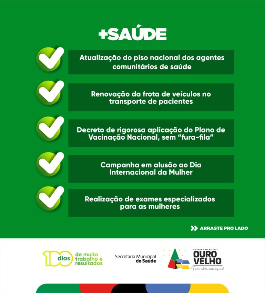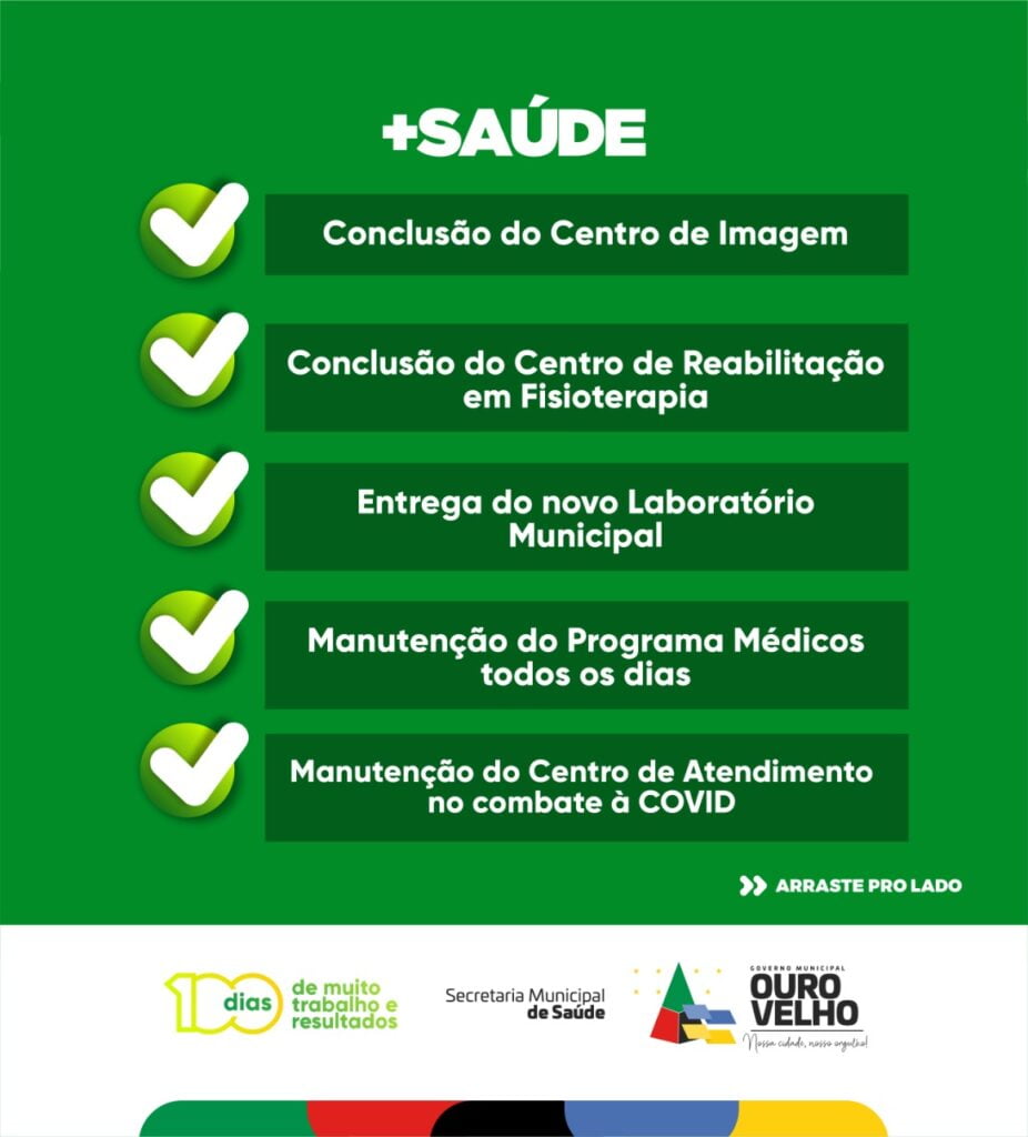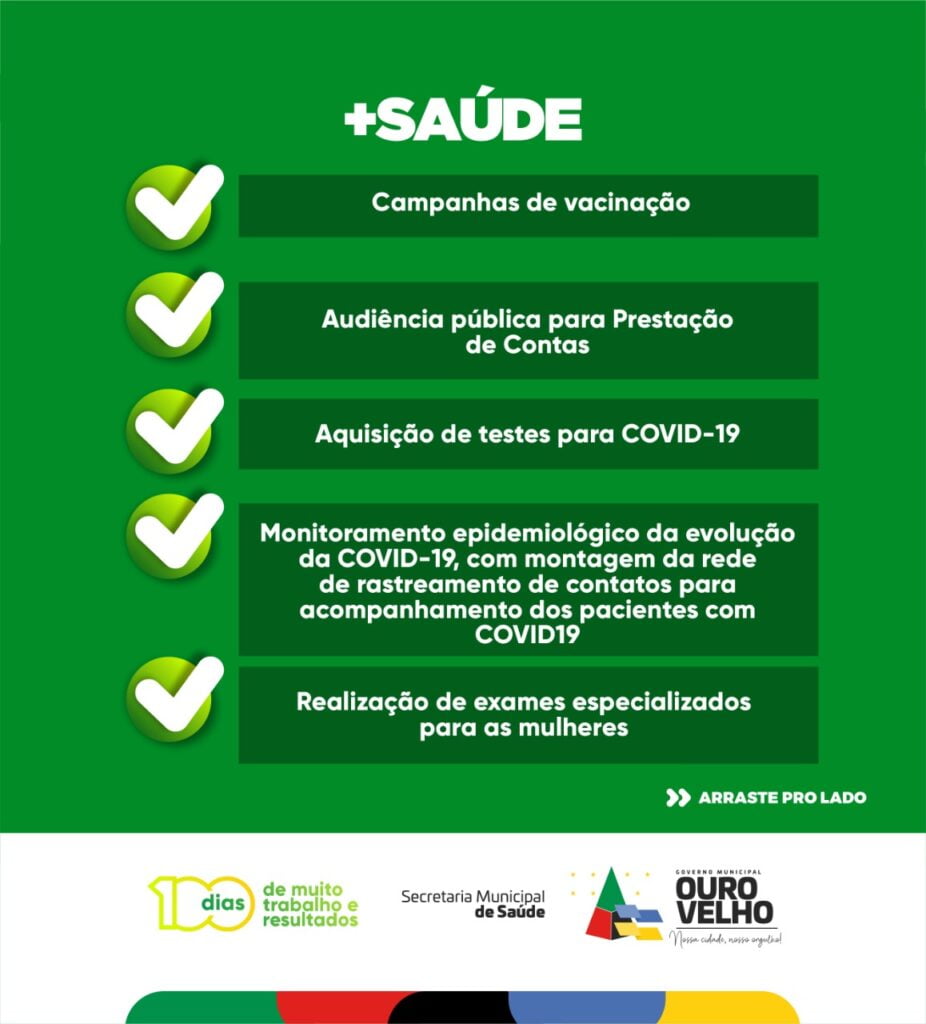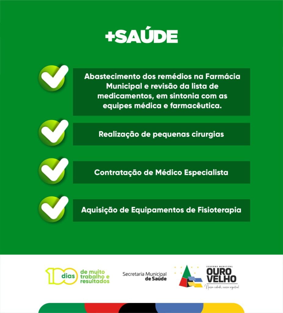 “Divulgamos 14 ações que realizamos nesses 100 dias de gestão à frente da Prefeitura de Ouro Velho, na área da saúde. Medidas que beneficiaram diretamente à vida dos ourovelhenses,” afirmou Augusto.