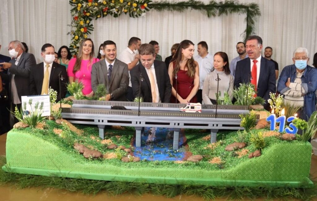 A cerimônia do corte do bolo ocorreu na Praça Monsenhor Alfredo de Arruda Câmara, logo após a missa celebrada pelo Padre Gilvan Bezerra, em homenagem aos 113 anos de Afogados da Ingazeira. O bolo, de 386 kgs, foi uma atração à parte, homenageando, pela primeira vez, uma obra a ser realizada: a ponte sobre o Rio São Francisco. Idealizado pelo artista Edgley Brito, com apoio na execução das confeiteiras Veriana Gouveia e Chriscia Martins, da Artes bolos Cris & Mô, e de Júnior Brito, da JR Brito Marcenaria Móveis Planejados. A decoração do ambiente ficou sob a responsabilidade de Gildete Costa, da Floricultura Plafam. A cerimônia foi abrilhantada pelas apresentações dos extraordinários músicos Edinho e Lindomar Souza, que deliciaram a todos com belíssimas canções.
