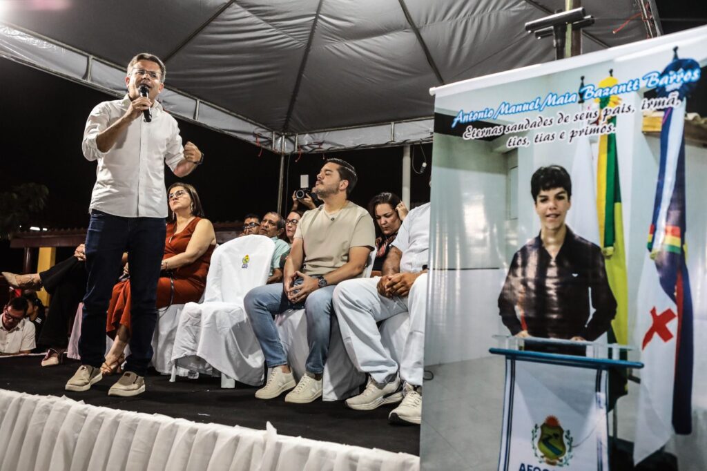 O Prefeito Sandrinho Palmeira se disse emocionado com as homenagens ao jovem Antonio e destacou a importância do trabalho permanente da gestão e da entrega de ações e obras para a população. “Nossa energia é a energia do bem, a que acolhe, a que tem entregas pra mostrar a população, e o abraço afetuoso de nossas crianças que recebi aqui é prova disso, desse reconhecimento. A nossa principal resposta para a coletividade é a entrega de uma obra como essa. Uma entrega por semana, fazendo o bem e levando o bem às pessoas,” destacou o Prefeito Sandrinho Palmeira. Em sua fala, o Prefeito apresentou aos presentes o projeto da piscina que será construída pela Prefeitura na Escola Dom Mota, a primeira de uma escola pública de Afogados da Ingazeira.