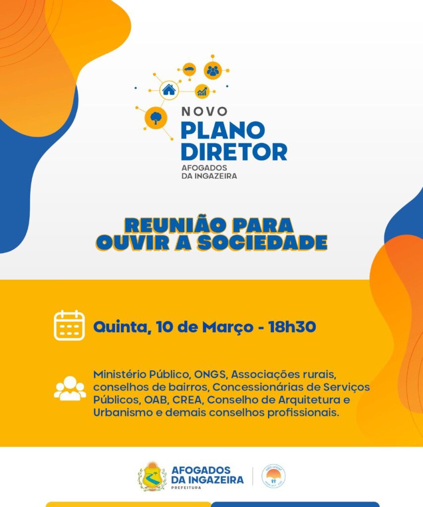 A Prefeitura de Afogados promove, de nove a onze de março, as reuniões setoriais do plano diretor, no auditório da câmara de Vereadores.