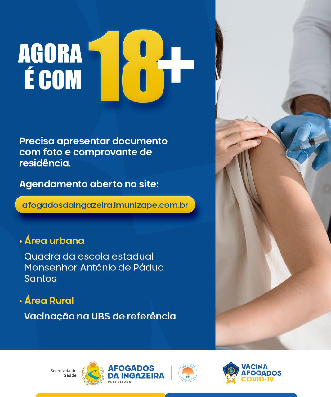 E conforme o secretário Artur Amorim informou em entrevista de rádio, a partir da próxima sexta (13) estará aberto o agendamento para o início da vacinação de pessoas com 18 anos e mais. A vacinação ocorrerá já no próximo sábado, na quadra da escola Monsenhor Antônio de Pádua Santos (entrada por trás da escola). Também a partir de sexta terá início o CADASTRAMENTO de adolescentes com comorbidades de 12 a 17 anos. Nesse caso será apenas o cadastramento. A vacinação desse público só será realizada após normatização divulgada pelo Ministério da saúde.