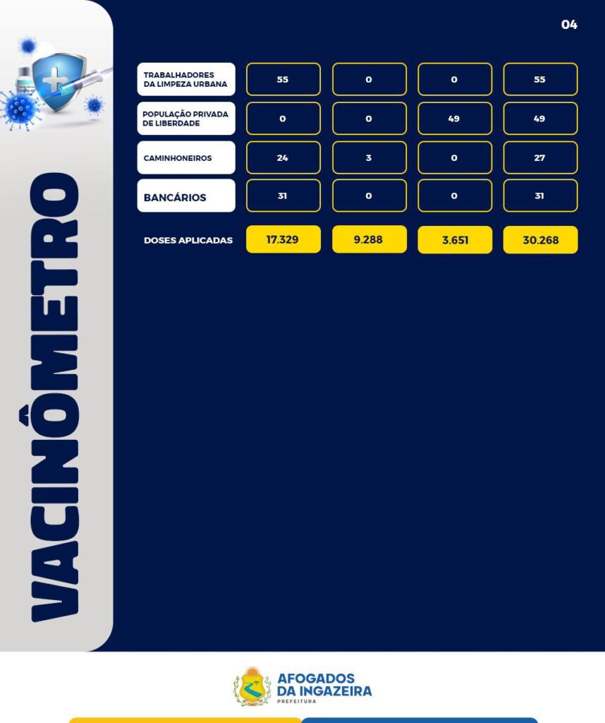 Prefeitura de Afogados já aplicou 30.268 doses de vacina contra a covid-19