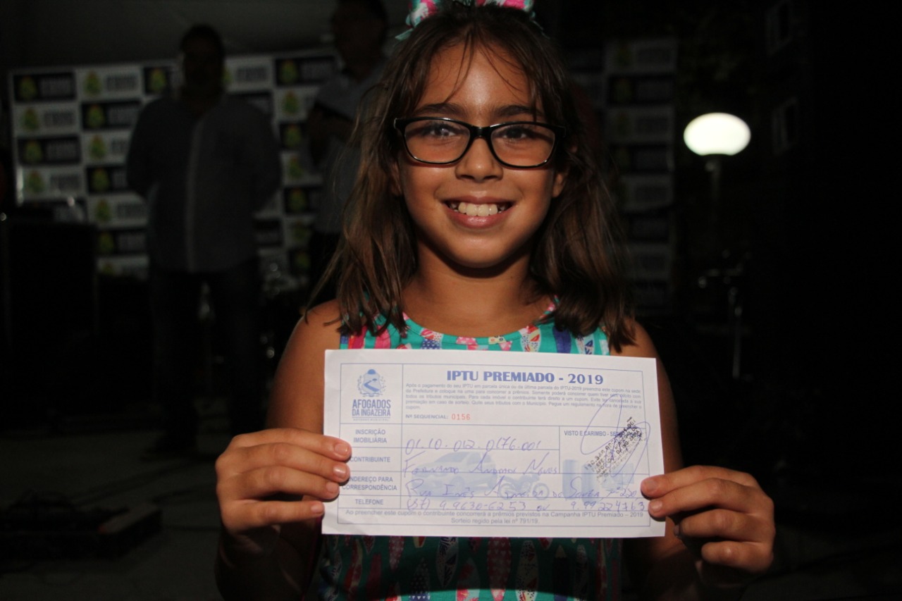 O sorteio dos cupons foram realizados por crianças presentes na praça de alimentação. Como no preenchimento dos cupons, o contribuinte informa o número do telefone, os vencedores receberam ligações, na hora, do Prefeito José Patriota, informando da premiação. “Fico muito feliz em poder retribuir, em poder premiar aqueles que, pagando seus tributos em dia, tanto nos ajudam a tocar obras e ações, nas mais diversas áreas da gestão pública. Essa premiação motiva, eleva a autoestima e promove a felicidade para muitos,” destacou Patriota. Os ganhadores da noite que não estiveram no momento do sorteio, podem procurar o setor de tributação da Prefeitura de Afogados para a retirada dos seus prêmios.