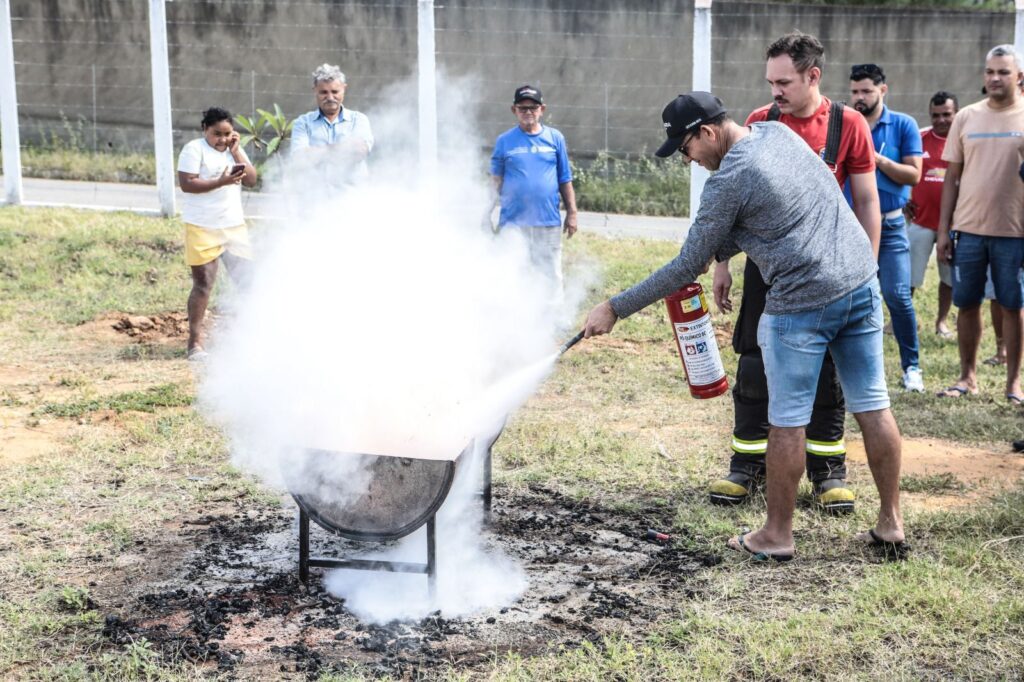 Integrantes do corpo de bombeiros apresentaram dicas de prevenção de acidentes e uso correto de extintores no ambiente de trabalho.