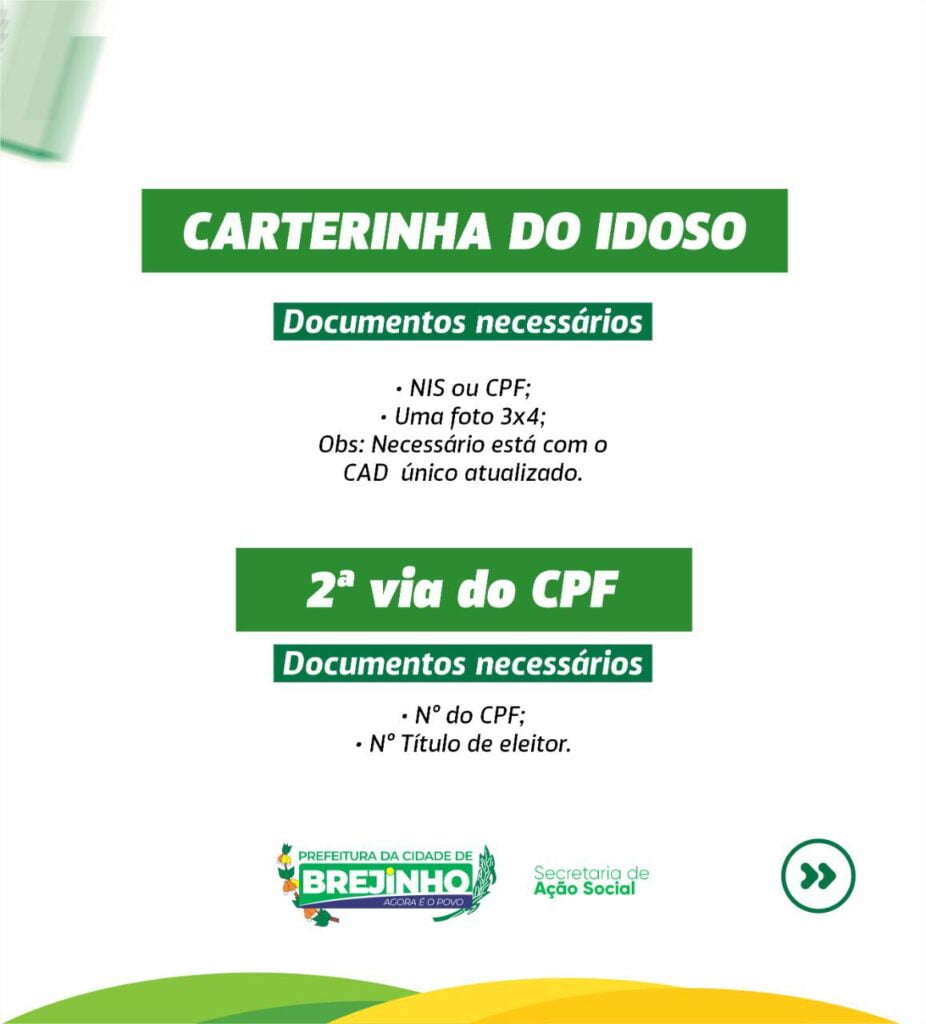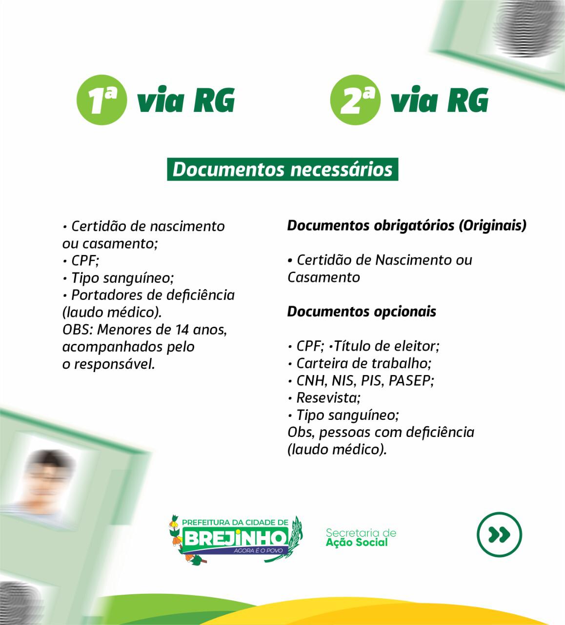 A secretária de Ação Social está oferecendo os serviços de emissão dos seguintes documentos: