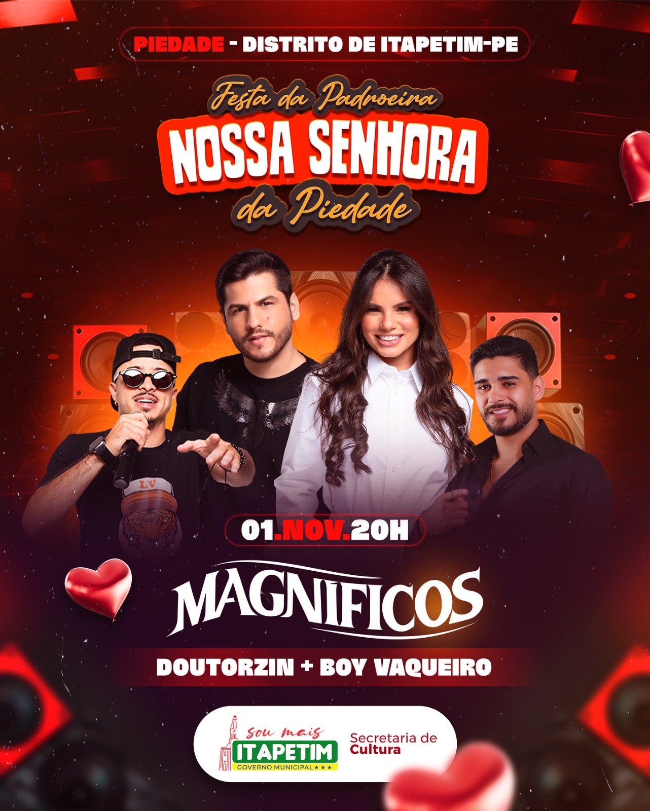 A Prefeitura de Itapetim, por meio da Secretaria de Cultura, anunciou a programação oficial da 29ª edição da tradicional Festa de Nossa Senhora da Piedade, que acontece no Distrito de Piedade do Ouro. O evento, marcado para o dia 01 de novembro, promete agitar os forrozeiros com atrações de destaque na música regional e nacional.