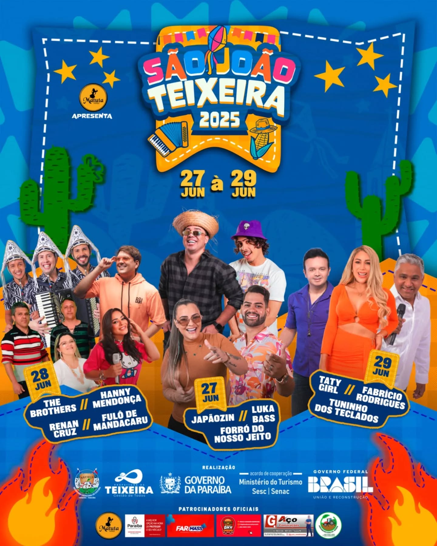Em um evento com muito forró pé de serra na noite deste domingo, 25 de maio, a Prefeitura de Teixeira divulgou a programação oficial do São João 2025.