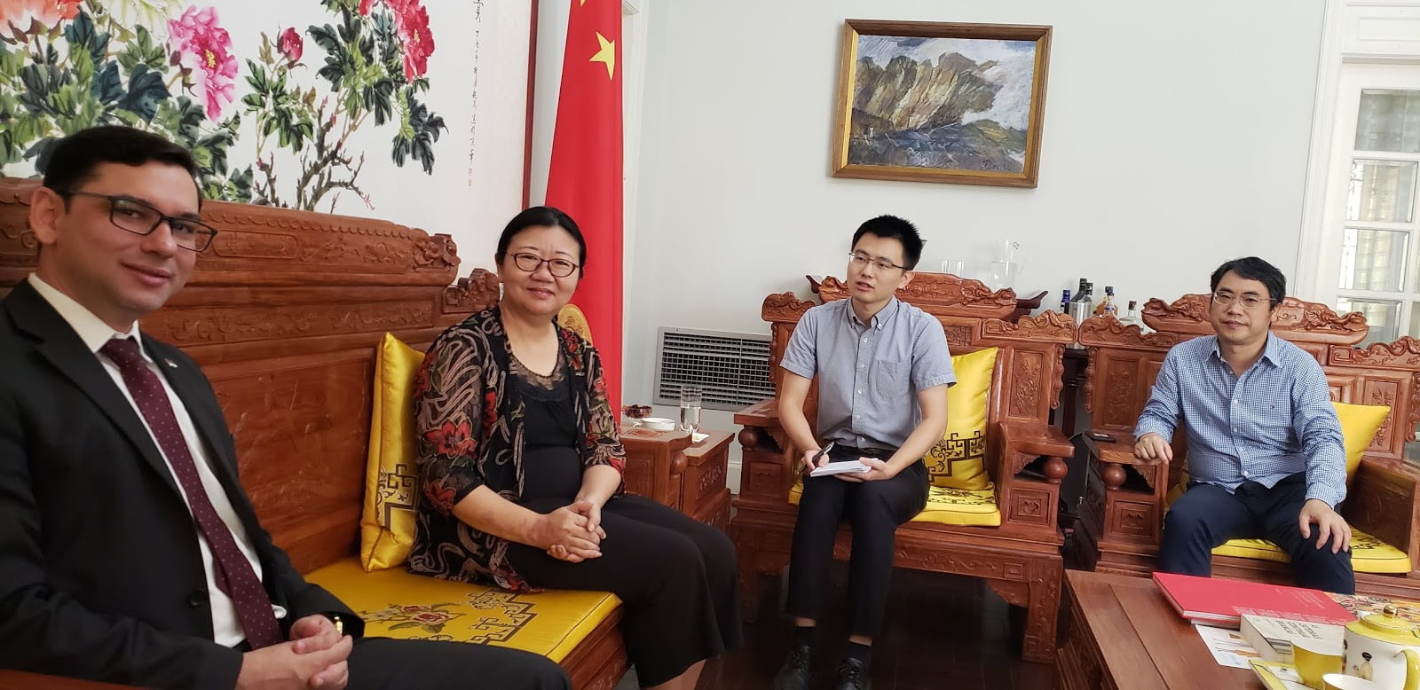 O encontro ocorreu no Consulado na China do Recife, durou cerca de duas horas, e contou com a presença do Cônsul Comercial chinês, Shao Weitong, e do promotor de Justiça de Afogados da Ingazeira, Lúcio Luiz de Almeida, este último integrante da Cooperativa de Caprinovicultores do Distrito de Jabitacá, que abrange produtores do Pajeú, do Moxotó e até do Agreste. “Esse é um projeto que parece ser uma luta contra a pobreza”, disse Yan Yuqing, que se encantou com o fato de Alberes estar tratando do tema praticamente na véspera de um feriado.