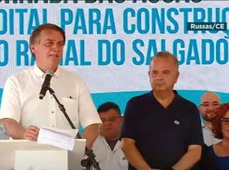 O presidente participou nesta quarta-feira, em Russas (CE), do lançamento do edital para a construção do Ramal do Salgado. Estava acompanhado do ministro do Desenvolvimento Regional, Rogério Marinho.