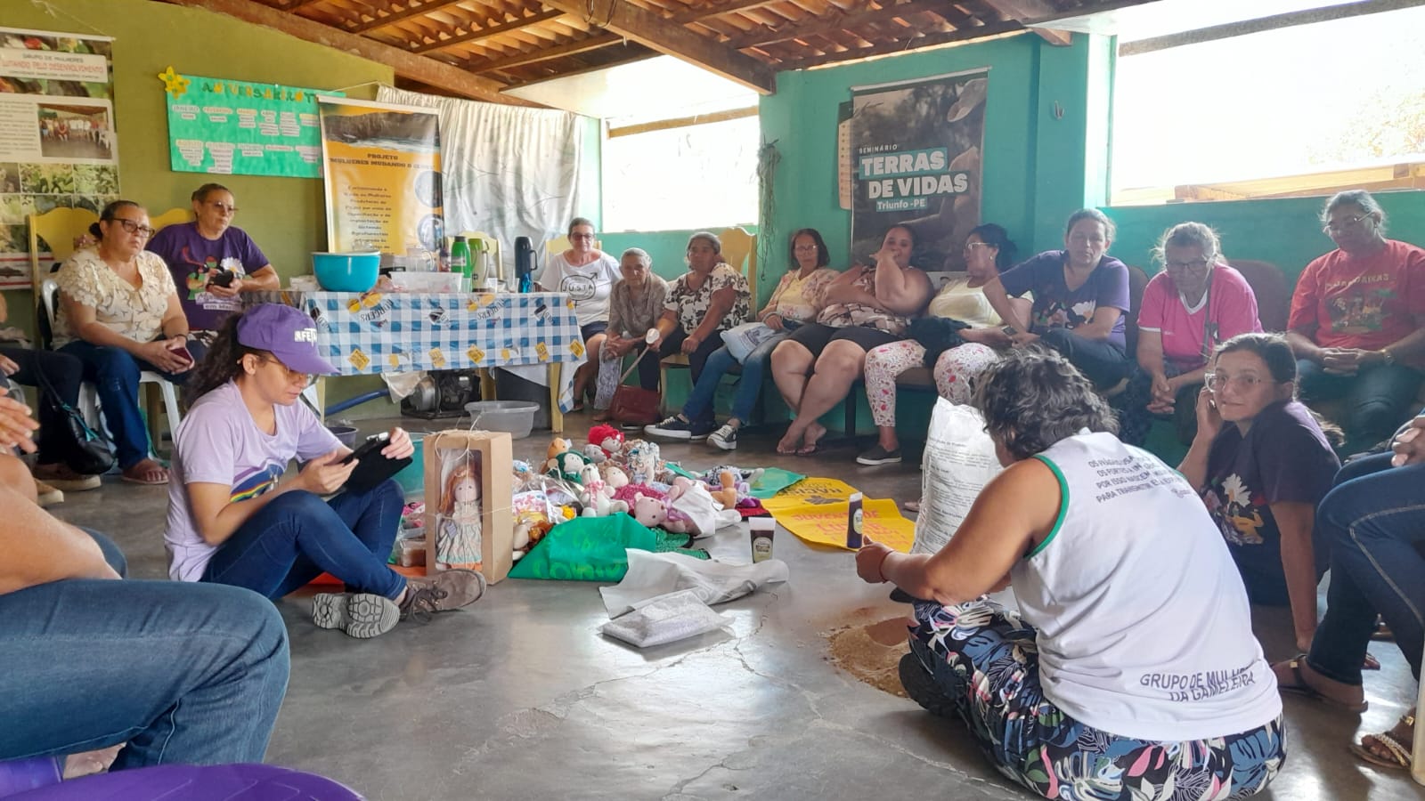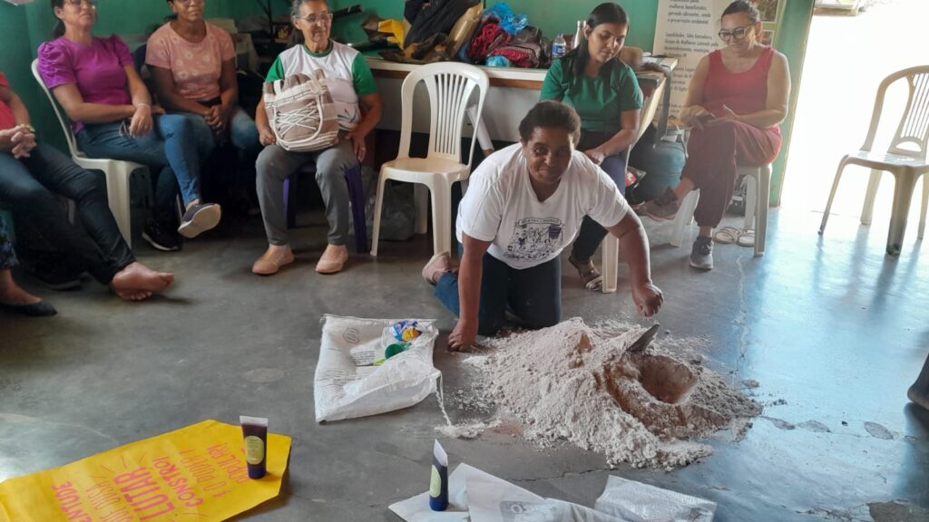 À tarde, houve uma roda de diálogo sobre a produção de mudas de espécies nativas a partir das experiências desenvolvidas pelas próprias mulheres da comunidade.